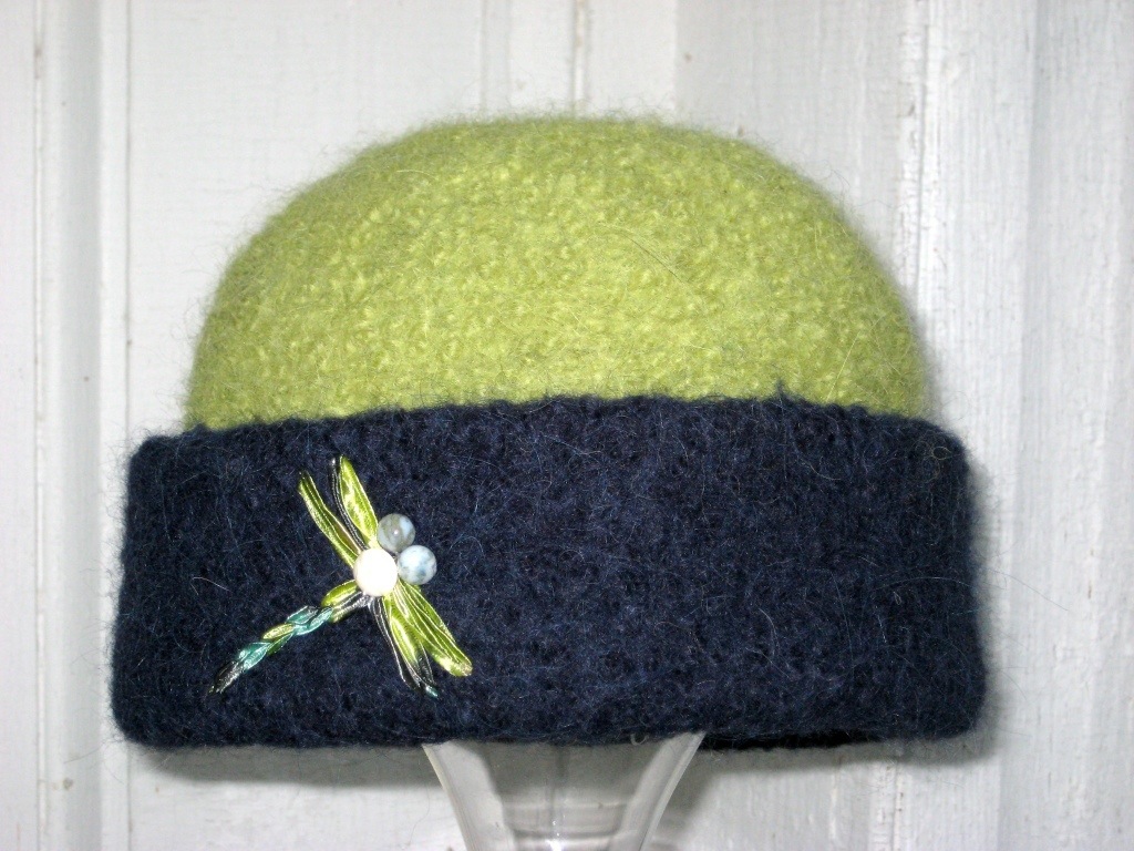 …and accidentally fell in love with this green/navy dragonfly hat when trying them on… So I treated myself and bought Pam her stunning pink-on-pink hat. We now are both stylish AND very warm!